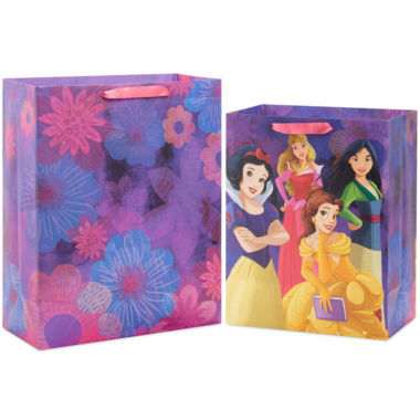 - Pack includes 1 large gift bag and 1 XL gift bag in Disney Princess designs on floral backgrounds