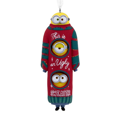 - Spark some holiday spirit with this fun Hallmark Christmas ornament that features Bob, Stuart and Kevin the Minions stacked up in a unique and festive ugly Christmas sweater.