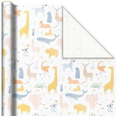 Hallmark Hallmark Recycled Wrapping Paper Animals, Grey Gingham, Rainbows