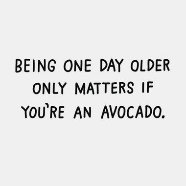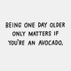 - Inside reads: "Being one day older only matters if you're an avocado."