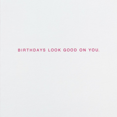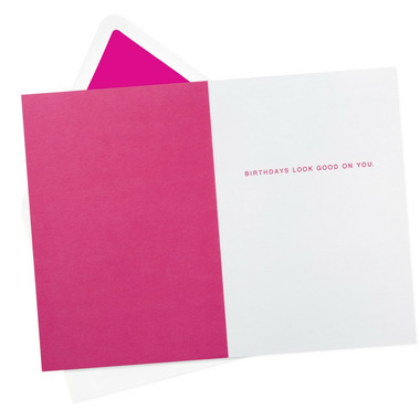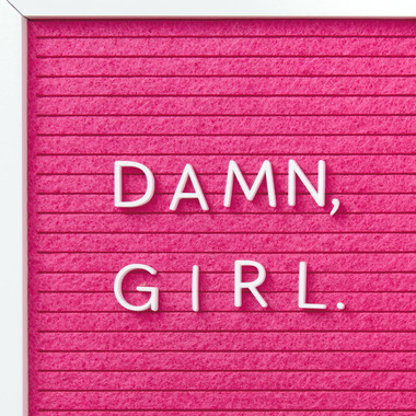 - Cover features a pink felt letterboard design with letters reading "Damn, girl." Inside reads: "Birthdays look good on you."