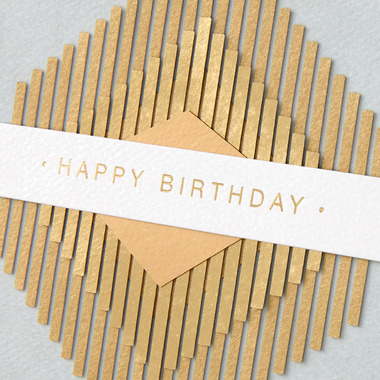 • Cover features dimensional metallic attachments in the shape of layered diamonds, and gold foil lettering that reads: "Happy birthday."