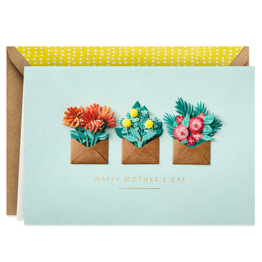 Wish an amazing mom a happy Mother's Day with a lovely Mother's Day card featuring paper craft flowers. With a warm sentiment and one-of-a-kind design, there's plenty of room to write your own message inside to one of your favorite people. A heartfelt note from her son, daughter, husband, wife, grandchild, sister, brother, or friend is the perfect way to let a special woman know how much she's loved and appreciated on Mother's Day and all year long.
