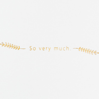 - Cover features raised gold lettering on a white background with foil accents. Inside reads: "So very much."