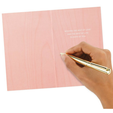 Offer beloved fiances or newlyweds warm wishes for a happy marriage with this elegant wedding card featuring an impressive wooden design. A great pairing for a gift card or present, or a beautiful standalone offering at an engagement party, wedding shower, or the big day. The Hallmark brand is widely recognized as the very best for greeting cards, gift wrap, and more. For more than 100 years, Hallmark has been helping its customers make everyday moments more beautiful and celebrations more joyful.