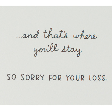 - Cover features a line drawing of a daisy with hand lettering that reads, "You're in my thoughts today" Inside reads: "...and that's where you'll stay. So sorry for your loss."