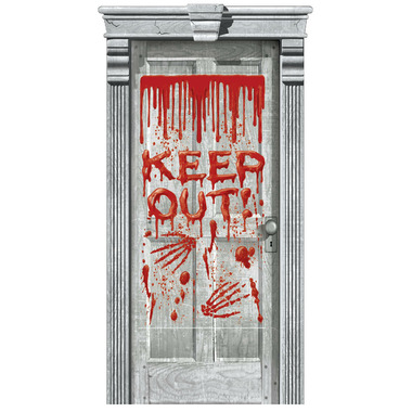 Dripping Blood door cover features bloody handprints and a "Keep Out" headline.