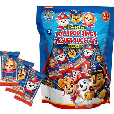 Paw Patorl Decorated Lollipop Rings. 18 lollipops per package.