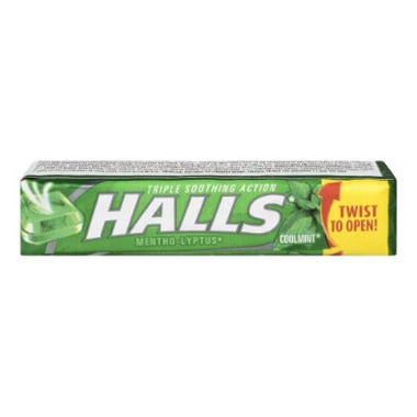 Halls Mentho-Lyptus Drops Coolmint temporarily relieves coughs, minor irritations or sore throat.