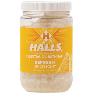 Soak in the moment and unwind with HALLS Lemon Bath Salts, infused with a proprietary blend of 100% pure essential oils and menthol designed to soothe, refresh, and invigorate your senses. Inspired by the classic flavour of HALLS Lemon, this aromatic blend transforms your bath into a revitalizing experience, delivering a cooling burst of comfort that helps you relax, breathe easy, and feel recharged.