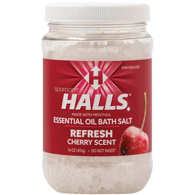 Soak in the moment and unwind with HALLS Cherry Bath Salts, infused with a proprietary blend of 100% pure essential oils and menthol designed to soothe, refresh, and invigorate your senses. Inspired by the classic flavour of HALLS Cherry, this aromatic blend transforms your bath into a revitalizing experience, delivering a cooling burst of comfort that helps you relax, breathe easy, and feel recharged.