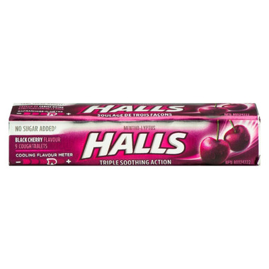 Halls Lozenges Mentho-Lyptus Black Cherry No Sugar Added fight coughs, soothe sore throats and relieve nasal passages.