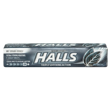 Halls Lozenges Mentho-Lyptus Extra Strength No Sugar Added helps to soothe your sore throat within 10 seconds.
