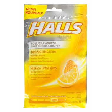 Halls Mentho-Lyptus Drops Honey Lemon temporarily relieves coughs, minor irritations or sore throat.