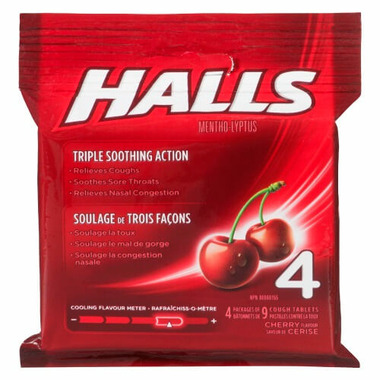 Halls Multi Lozenges Cherry temporarily relieves coughs, minor irritations or sore throat.