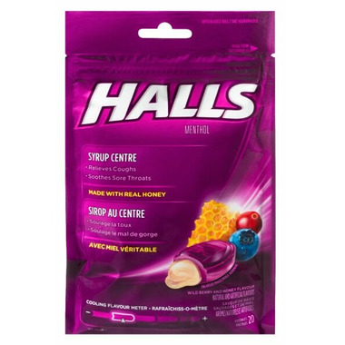 Halls Wildberry Soothing Centres are made with 100% pure honey which helps to soothe your sore throat within 10 seconds.