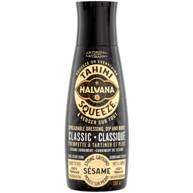 Halvana Artisanal Tahini Squeeze is a stone sesame condiment that can be used as a spreadable dressing, dip, and more.