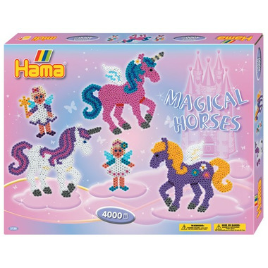 Includes approx. 4000 beads, large hexagon & fantasy horse, pegboards, design sheet, ironing paper & instructions.