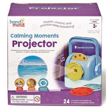 Project mindful moments onto the walls or ceiling in the classroom or at home. Choose from 3 interchangeable discs, including 8 yoga poses, 8 serene scenes, and 8 relaxing breath patterns. The projector doubles as a soft, glowing night-light with a timer function. The Getting Started Guide ensures an easy setup.