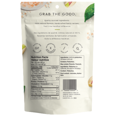 Dry roasted California pistachios with pink Himalayan salt are filled with quality sourced ingredients that are 100% natural flavours!