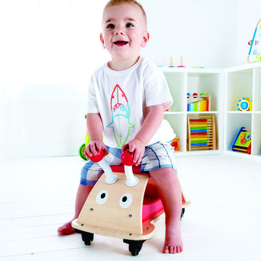 Hop aboard this silly bug's back and scoot it around and about your home with this Hape Ladybug! Stow your favourite toys in the bug's belly and take them along on your trip.