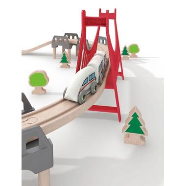 Build a complete Hape Railway from the ground up complete with bridges, curves and station! We provide the pieces and you provide the imagination! When you"re finished designing and building, take the bullet train on a test drive around your railroad.
