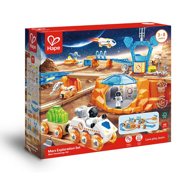Blast off and join the interstellar fun with the Mars Exploration playset. This set merges railway and space exploration and features astronaut figurines, underground lab and other accessories for role play. With glow-in-the-dark stickers to customize their tracks, this set promotes problem-solving skills, creativity, and curiosity in young astronauts.