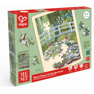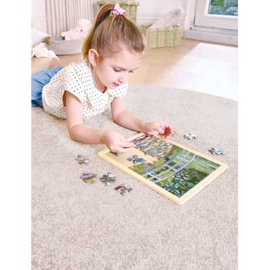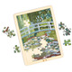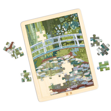 Create a peaceful garden scene with this 48-piece wooden puzzle inspired by Claude Monets Bridge over a Pond of Water Lilies, framed for ease and display.