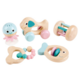 This wonderful collection of toys grows with your little ones and helps their development every step of the way. Featuring rattles and chewy teething beads for babies, a stay put rattle for when they`re big enough for the table, and rolling crawler puppy and rattles for when they grow into toddlers!