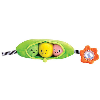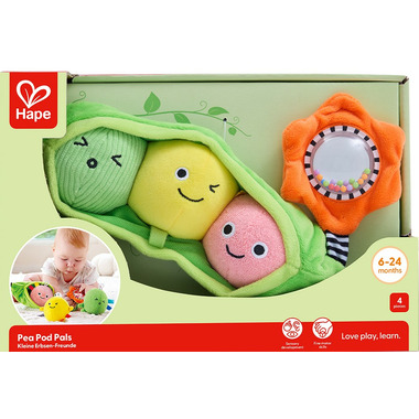 The Hape Pea Pod Pals is a delightful infant toy designed to provide a variety of sensory stimulation for young children. This toy features three adorable, colourful balls, each with a unique tactile experience. One ball includes a hole surrounded by crinkle material, perfect for little hands to explore and create satisfying sounds. Another ball contains a bell inside, offering auditory stimulation with every shake. The third ball houses a rattle, adding to the auditory and tactile fun. Additionally, the set includes a flower rattle with a mirror in the middle, encouraging visual exploration and self-recognition.