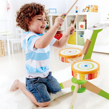 Keep the beat with this perfectly-scaled set of drums, cymbals and rhythm makers. Teach your child about musical beats by clapping hands to a favorite song.