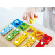 - The included wooden puzzle pieces fit into the corresponding holes and matched by either shape or colour