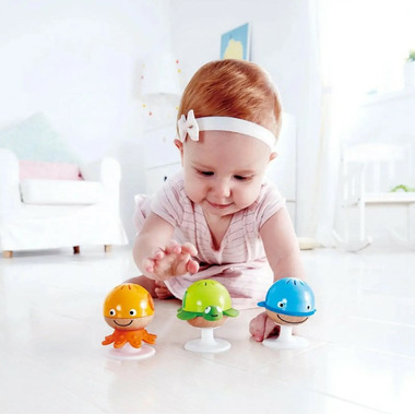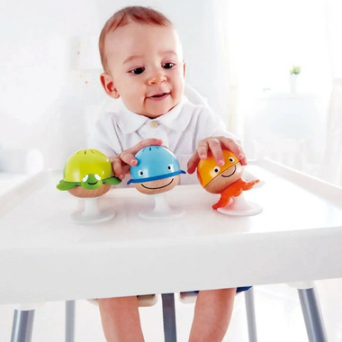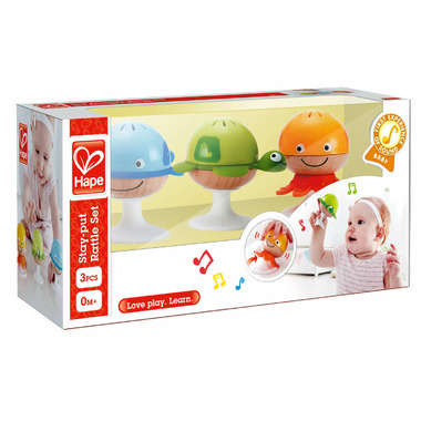 The Hape Put-Stay Rattle Set will enchant your little one with its differing sounds, bright colors and aquatic animals. Moreover, with their handy suction cups, playtime is possible anywhere, anytime! Thoughtfully developed infant toys stimulate baby senses and encourage discovery. Improve Early Grasping Skills Enable your little one to explore their geometric rattle a little, let them improve their gross motor skills and stimulate the sense of hearing as they shake their rattles.