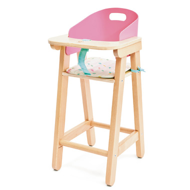 A cute wooden dolls high chair with a removable cushion - perfect for pretend meal times!