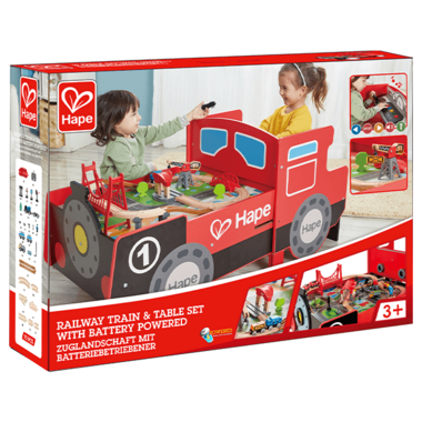 Now you can be an engine driver sitting at the control board with fun light and sound effects, or move the small train around the track on the play table! When you've finished playing, tidy everything into the table and slide it into the base to save space.