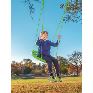 Swing in style with this durable nylon swing! Easy to assemble steel frame with safety foam, and hassle-free hanging.