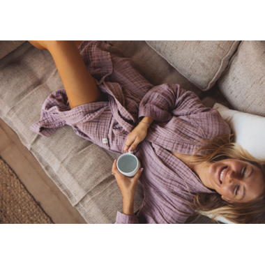 Get down with Gauze. This new featherweight gauzy woven robe is the perfect lofty layer to cozy up to all year round. This super soft, highly absorbent, breathable weave breaks into a beautiful texture after wearing & washing. Happy Place designed this unisex style with a raglan style sleeve so you never feel a seam and two large patch pockets to store your lounging essentials.