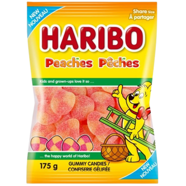 Haribo Peaches Gummies.Kids and grown-ups love it so... the happy world of Haribo!