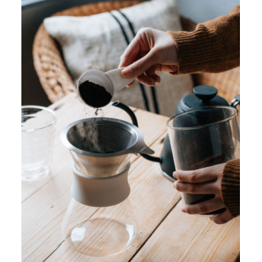 The simple design of HARIO's combined dripper and decanter is completed by an all stainless steel double mesh filter that ensures airflow for an even extraction. The double-layer construction of the delicately, etched filter provides a simple balance of a clean drip brew and plenty of the oils for a full bodied flavour. The removable, silicon collar provides simple and elegant protection for your hands.