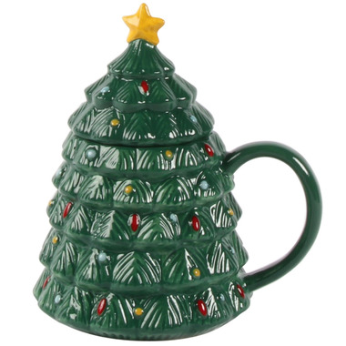 This festive tree shaped covered mug is a unique addition to anyone's mug collection for an extra holiday touch.