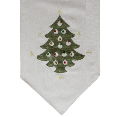 This table runner adds holiday elegance to any table setting. Applique and embroidered details. Machine Washable.
