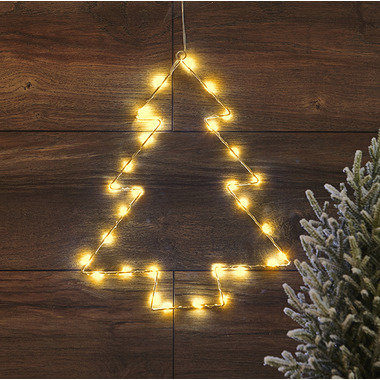 This Metal Hanging Tree has over 30 LED Lights that will add a festive charm anywhere in your home. Easily operated by 3AA Batteries (not included)