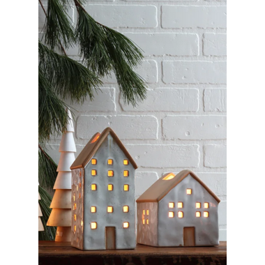 Featuring a soft glazed finish, this ceramic chalet will add charm to any space. LED lights or candles can be added for a soft glow.