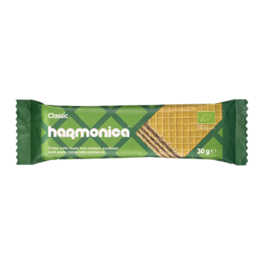 Crispy wafer made with einkorn, sunflower seed paste, cocoa and coconut oil.