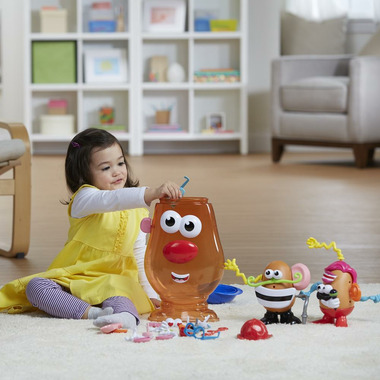 Have big laughs and loads of fun with this Mr. Potato Head container. The Mr. Potato Head Spud Set comes with parts and pieces to create a fireman, a policeman, and a chef...but that's not all! With two 5.5-inch potato bodies and over 40 accessories, kids can mix and mash the parts in many different ways to create all kinds of wacky looks. Then when they're finished playing, the parts can be stored conveniently in the Mr. Potato Head container. Mr. Potato Head toys can be a wonderful early creative play experience for toddlers. This classic play pattern of grasping and attaching pieces can help promote a child's fine motor skills while incorporating imaginative play. Most parts are compatible with other Mr. Potato Head and Mrs. Potato Head toys (each sold separately).