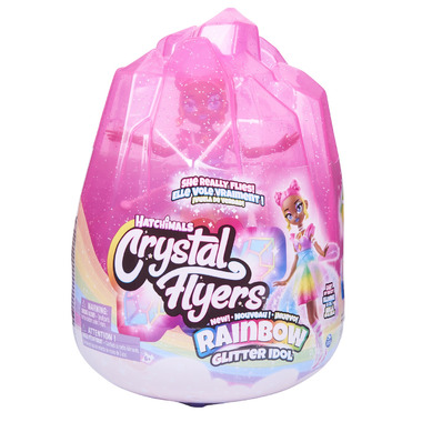 Light up the sky with the Hatchimals Pixies Crystal Flyers Rainbow Glitter Idol! Crystal Flyers are the first-ever Hatchimals Pixies that can really fly with your help! Inside of the gorgeous crystal egg, you'll find a beautiful Crystal Flyer Pixie with glittery wings, a rainbow dress and matching colorful makeup. Remove your Rainbow Glitter Idol Pixie from her egg and charge her with the included USB cable. When she's fully charged, she's ready to air dance and fill the sky with a burst of color! Switch your Pixie fairy doll on and the LED lights on her dress will start to pulse and her glittery wings will begin to flutter and spin. Let her go and she'll magically fly - use your Pixie Power to guide her! Featuring a built-in sensor, your Rainbow Glitter Idol Pixie doll can sense where your hands are as you help her to fly indoors. Lift your hands high and she'll fly high, move them low and she'll fly low, dancing through the air! As she hovers above your hands, her dress shimmers and her glittery wings sparkle as she flies! She's so pretty! With enough practice, you and your Pixie are on your way to becoming the best air dancers in the Hatchmosphere! Mid-flight, you can safely grab your Pixie's legs to reposition her. Made of durable and safety tested materials, if you accidentally touch her wings while she's flying, it's completely safe - with an auto-stop feature, she'll stop flying right away. When she's not flying, display your Pixie inside her sparkly clear crystal egg. Crystal Flyers and Hatchimals surprise toys for girls are perfect for kids who enjoy cute collectibles, action figures, dolls, and small toys. Crystal Flyers make great birthday gifts, Christmas gifts or gifts for any occasion for kids aged 6 and up. Bring your very own Hatchimals Pixie to life with the Hatchimals Pixies Crystal Flyers Rainbow Glitter Idol! The magic is in your hands!
