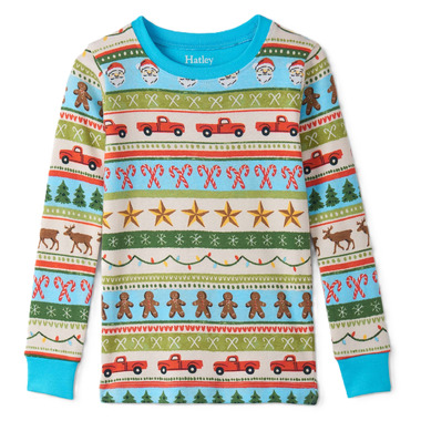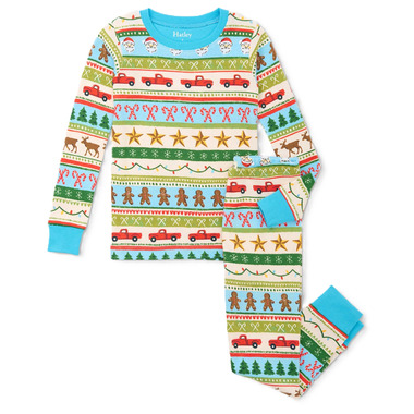 Hatley Cotton Pajama Set Blue Fun Fair Isle