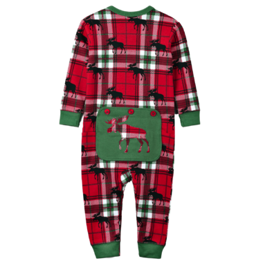 Hatley Little Blue House Infant Union Suit Holiday Moose on Plaid