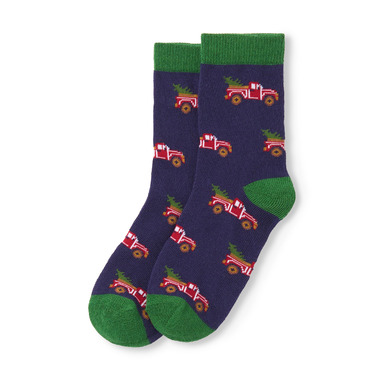 Hatley Little Blue House Kids Crew Socks Red Truck Hauling a Tree