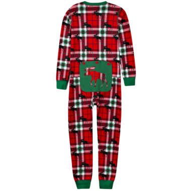 Hatley Hatley Little Blue House Kid's Union Suit Holiday Moose on Plaid